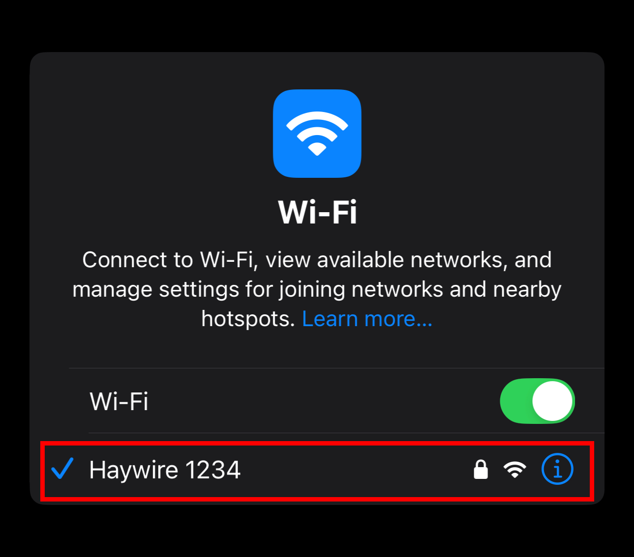 - Tap your connected network's name again to view your Wi-Fi details.