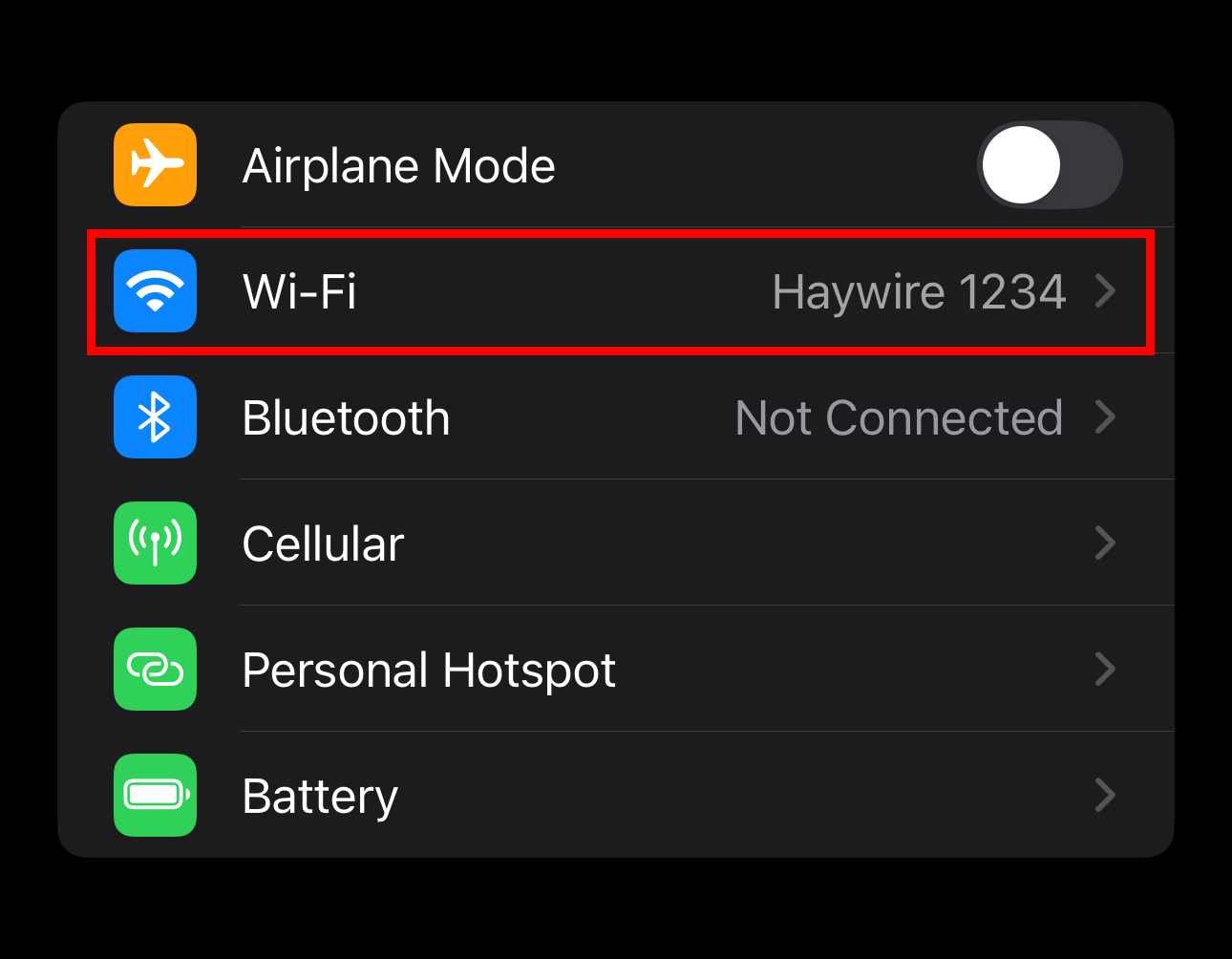 - In the Settings app, tap the Wi-Fi button with your network name listed on the right.